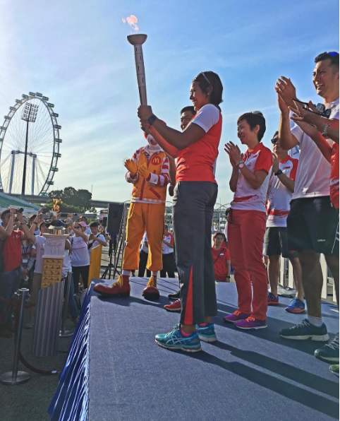 Anyway, it was supposed to be a walk (I think) but the guy who was accompanying me (because he was worried I couldn’t carry a torch while running) suggested that we should run and yes, we ended up running that 3.2km distance. Finished the loop around the Marina Bay area sweating like a banana.